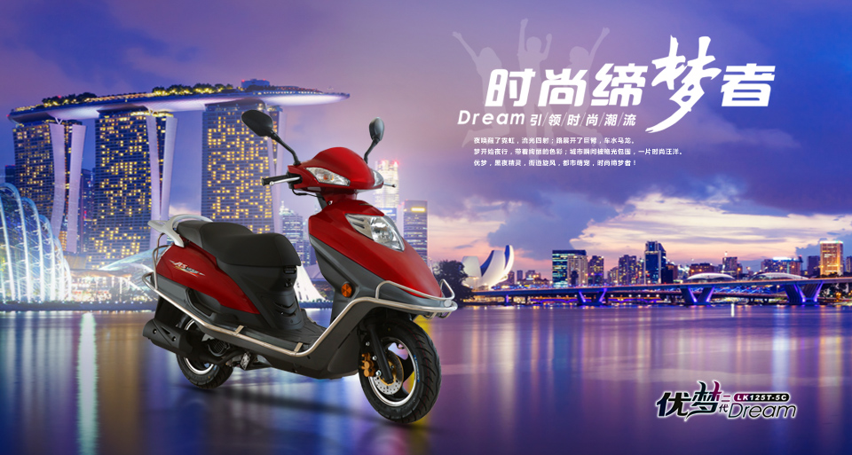 优梦,凌肯全新打造的一款都市轻型踏板,造型优雅中蕴含力量,含蓄中充满骚动,如青春时代欲言又止的羞涩,这正是优梦展现出的“青春时尚”魔力造型风格。