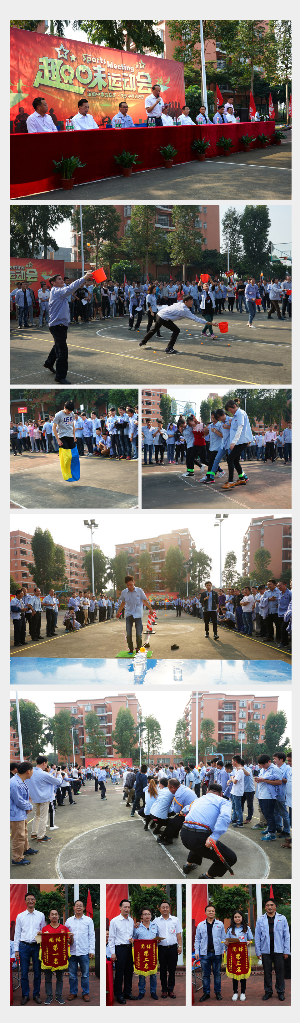 在各部门的大力支持下,在公司全体人员的积极参与下,在所有参赛队伍的共同努力下,运动会取得了圆满成功。运动员们在场上拼搏进取、尽情挥洒,观众们在场下加油呐喊、助威激励,广播员们出口成章、幽默激动地播报活动过程和比赛成绩,嘉宾们于颁奖台前热情颁奖……凡此种种,一幕幕都温馨感人,真情流露。这是一次充满乐趣、激动人心的竞赛,也是一次增进友情、分享快乐的友谊赛,更是一次增强体质、锻炼意志、增强集体荣誉感和凝聚力的体育盛会!