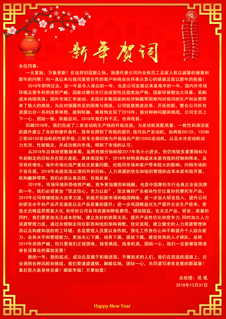 上一篇:励精图治 共创未来 -- 凌肯摩托2019年新春团拜会暨优秀员工表彰大会